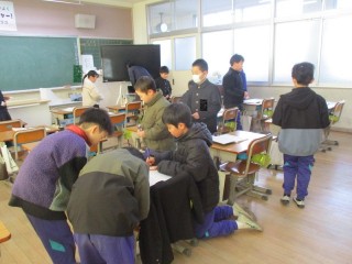 朝の時間に、自主学習ノート展示会がありました。今回は、1つ上の学年の自主学習ノートを見て、付箋にコメントを書いたり、シールを貼ったりしました。6年生は1年生の教室に行きました。