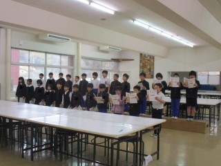 全校宝タイム集会発表 公開日 2026/02/05 更新日 2026/02/05 2年生 今回の全校宝タイム集会は、2年生がランチルームからリモートで発表しました。国語で学んだ説明文「あなのやくわり」をグループごとに音読した後、各自で調べた中の、フライ返しやドーナツ、フライパンの持ち手などの穴のやくわりを知らせました。
