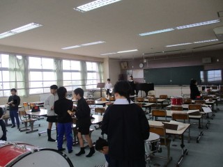 いろいろな打楽器を組み合わせて、音の響きを楽しむ音楽づくりです。グループごとに練習をしています。