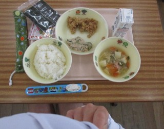 今日はひなまつり。給食もひなまつりメニューでした。手巻き寿司(肉みそ、ツナサラダ)すまし汁、ひなあられ、牛乳です。昨日は、ももの杏仁どうふが付いていて、デザートが続いています。ちなみに、明日はイチゴが付く予定です。