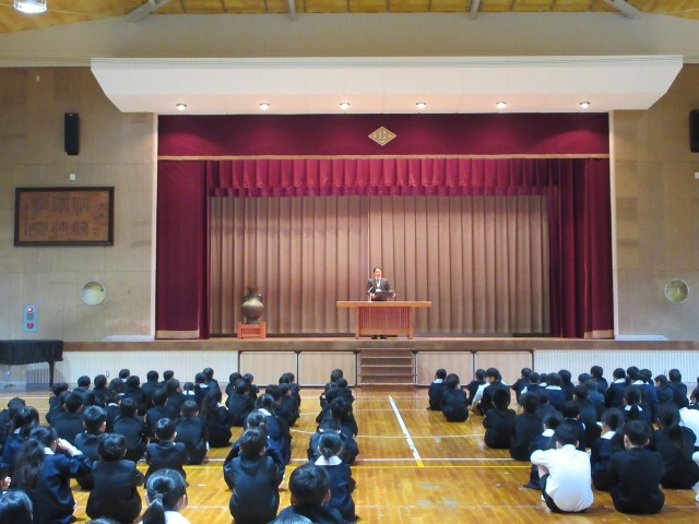 2年生から6年生までの児童が体育館に集まり、立派な態度で式に臨みました。