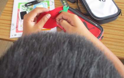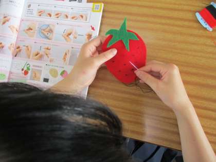 玉むすび、玉どめ(5年2組) 公開日 2022/06/01 更新日 2022/06/01 学校全体 最後は、5年2組さんの家庭科の時間です。玉どめ、玉むすびの練習をしながら、かわいいイチゴが出来上がっていました。