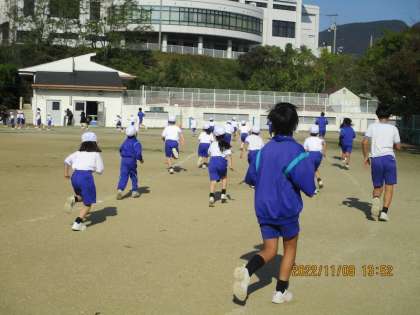今日から、ジョギングタイムが始まりました。清掃後のふれあいタイムに小運動場で2学年ずつ、マラソン大会に向けて練習をします。火曜日の今日は、1、6年生が走りました。木曜日に2、5年生、金曜日に3、4年生の予定です。