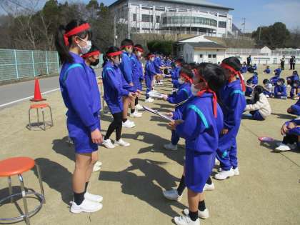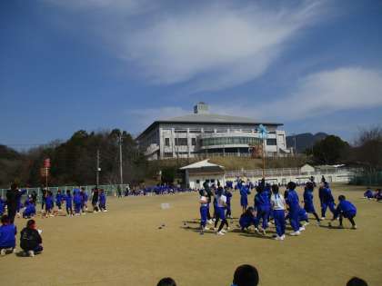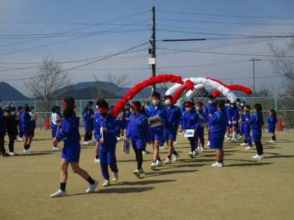 3、4時間目に6年生を送る会をしました。1年生から4年生までがそれぞれ6年生とのゲームを楽しんだ後、小運動場に移動して全校生で「ダンシング玉入れ」をしました。曲に合わせて動く時間と玉入れをする時間が交互にやってくるという玉入れです。結果は、黄チームが優勝しました。その後、在校生からのプレゼントの色紙を1年生が渡しました。花のアーチをくぐる6年生の笑顔が、準備をがんばってきた5年生にはうれしかったことと思います。