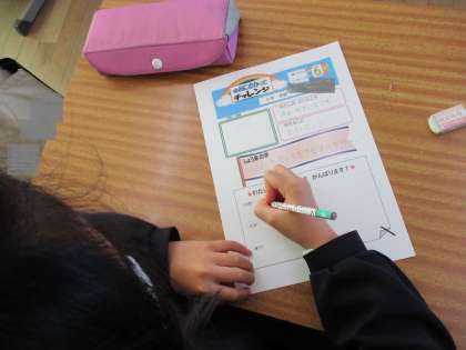 新年度の始まりに際して、自分のよいところやすきなところ、将来の夢、学習や生活や家で頑張りたいことなどを「キャリアパスポート」に書いています。このキャリアパスポートは、高校を卒業するまで毎年書いたものを積み上げていくものです。