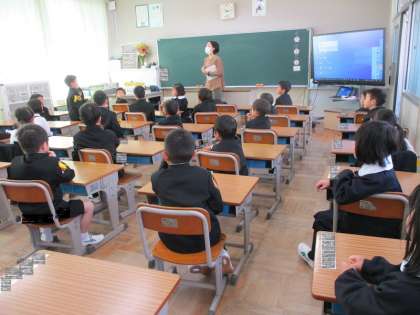 4月10日(月)、いよいよ始まった小学校生活です。今日は、ランドセルの片付け方や授業の挨拶の仕方、帰りの用意の仕方など学校生活で毎日することを中心にしました。途中では、本の読み聞かせもありました。写真は、読み聞かせのことについて発表しているところです。