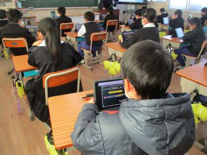 デジ防災(4年2組) 公開日 2023/12/08 更新日 2023/12/08 学校全体 「デジ防災」で、防災について学んでいる4年2組さんです。今日は、まず、自分たちも進んで地域の人と一緒に防災力を高めようとしている学校の取り組みから学んでいました。