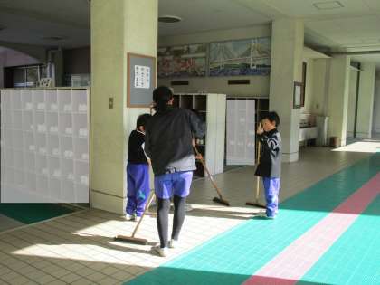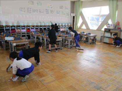 1月16日(火)、今日から3学期の、新しい場所での清掃がスタートしました。高学年の子がほうきの使い方を教えたり、担当の先生から掃除の仕方を教わったりしながら、掃除をしていました。初日なのに、だまって掃除をしている場所が何カ所もあり、さすがだなと思いました。