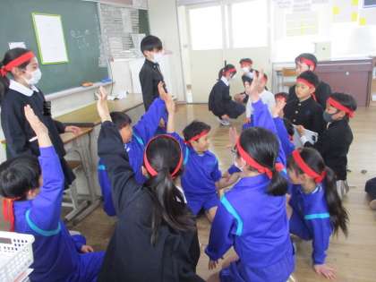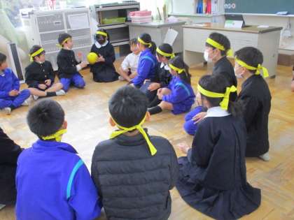第4回のなかよしの日の遊びがあり、天候のため、今回は中で行われました。「〇×クイズ」「ばくだんゲーム」「NGワードふうせんリレー」など、6年生がいろいろな遊びを準備し、班ごとに分かれた教室で楽しみました。これまで4回のなかよしの日の遊びを計画し、実施してくれた6年生のみなさん、ありがとうございました。