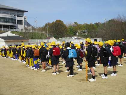 久しぶりの集団下校 公開日 2024/04/10 更新日 2024/04/10 学校全体 久しぶりの集団下校です。まだ、1年生がいないので少しさみしい感じがしました。来週には、1年生も入っての集団下校となる予定です。下校集会の最後には、児童会から、明日のアルミ缶回収はないことが周知されました。回収が始まるまで、おうちの方に置いておいてください。