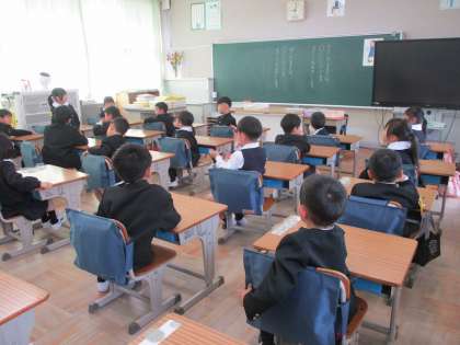 1時間目に、自己紹介をしました。一人ひとり、自分の名前と「よろしくおねがいします。」の言葉を言いました。