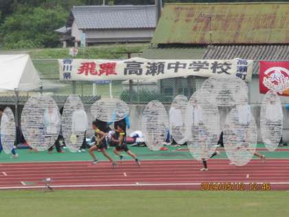 5月12日(日)観音寺総合運動公園で、近県陸上カーニバル大会があり、上高瀬小学校からも5、6年生が出場しました。今回の大会は、100M走と男女混合リレーの2種目でした。今年度初めての陸上の大会で練習の成果を発揮しようとがんばりました。