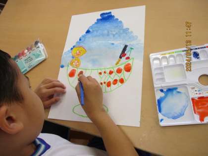 図工の作品がいよいよできあがっていました。おいしそうで、すずやかな感じになっています。