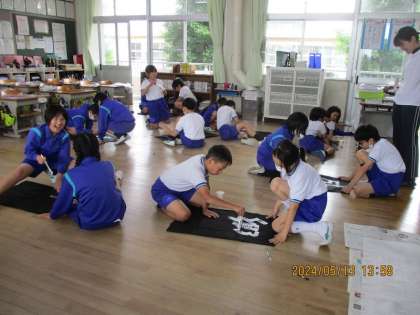 5年1組さんも 公開日 2024/05/13 更新日 2024/05/13 学校全体 5月13日(月)5時間目、5年1組さんも、はっぴに字を書いていました。にこにこした笑顔や真剣な表情など様々でしたが、なんだかとても楽しそうでした。