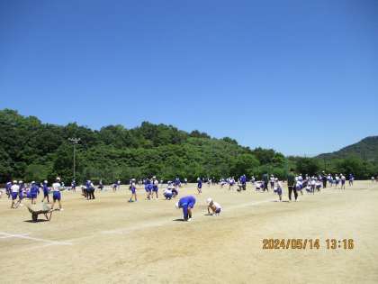 昼休みから掃除の時間にかけて、1年生から6年生までみんなで、大運動場の石拾いをしました。「こんなに大きいのがあったよ。」「両手いっぱい拾ったよ。」など、進んで拾っている子たちが多く、一輪車の中にはたくさんの石が集まりました。みなさん、おつかれさまでした。