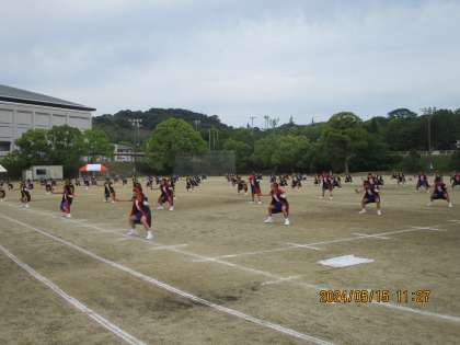 予行の最後は、5、6年生の「南中ソーラン」でした。はっぴを翻しながらの力のこもった動きの一つひとつに目が釘付けになりました。和太鼓の響きとともに入退場やそれぞれの学級で作成した旗など、どれも素晴らしいものでした。
