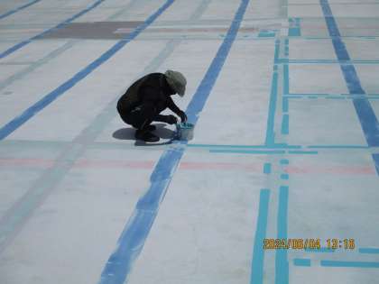 先週プール掃除が終わった後、点検をしていただくと、プールの底面が傷んでいることが分かりました。土、日から今週に入ってずっと、修繕をしていただいていますが、まだかかりそうです。修繕が終わって水を入れ、機械などの点検となりますので、10日(月)に予定しているプール開きは安全面を重視し、延期となりそうです。具体的なプール開きの日程は、修繕の進み具合を相談しながらとなります。楽しみにしている子も多いと思いますが、ご理解とご協力をのほど、よろしくお願いいたします。