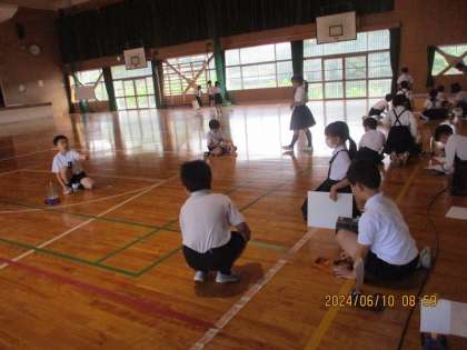 風のはたらき(3年2組) 公開日 2024/06/10 更新日 2024/06/10 学校全体 理科の時間、体育館で風の働きについての実験をしています。風の強さによって車が動いた距離がどう変わるのかについて、グループごとに調べています。