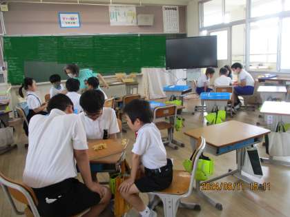 読書クラブは、「偏愛マップ」を使って自己紹介をし合っています。将棋クラブは将棋のこまを使ったゲームをしていました。シーズンスポーツクラブはバスケットボールをしています。