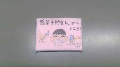 コロナ対策を 公開日 2021/01/19 更新日 2021/01/19 学校全体 6年生がティッシュの後ろの部分を使ってコロナ感染を防ぐための呼びかけをしてくれました。全校生一人ひとりに渡されたティッシュには、6年生からのメッセージが書かれています。