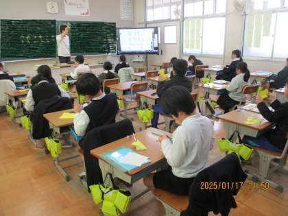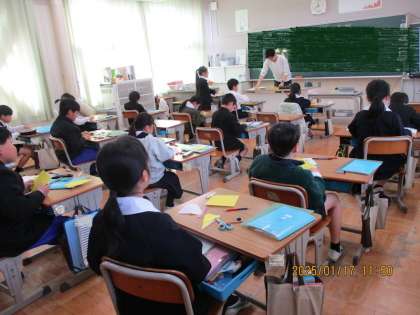折り紙で(3年1組) 公開日 2025/01/17 更新日 2025/01/17 学校全体 折り紙を使って、正三角形や二等辺三角形などを作る学習をしていました。先生と一緒に確かめながら進めている様子を写真に撮りました。