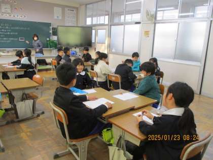 木曜日朝のチャレンジタイムことばは、3学期、グループで話し合う活動をしています。今日は、「みんなが遊べる公園にどんな名前をつけたらよいか」について、自分の考えとその理由、友達の考えについてなどを話し合いました。どんな名前を考えたのか、ぜひ、聞いてあげてください。