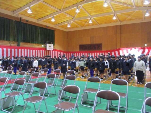 卒業式練習(在校生) 公開日 2025/03/10 更新日 2025/03/10 学校全体 卒業式に会場で参加する3、4、5年生が椅子を運んでの練習をしました。姿勢や礼などの基本動作の練習の後、6年生に送るお祝いの言葉の練習などをしました。