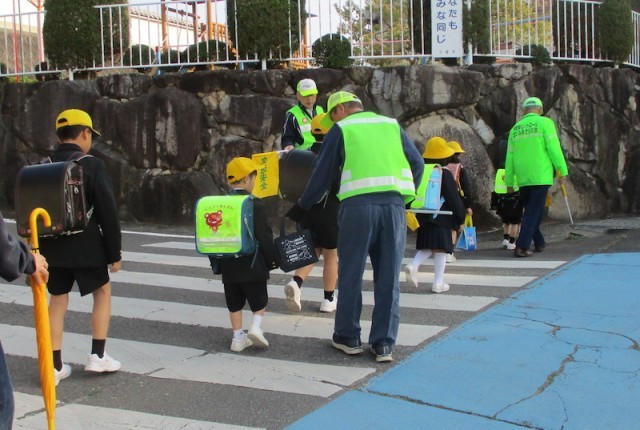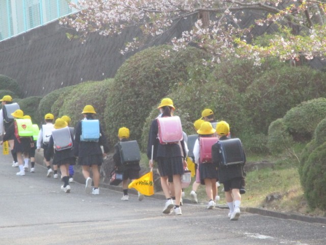 ランドセルをせおっての集団登校をしている1年生を、ときどき振り返りながら歩く班長さんの姿がありました。ゆっくりと歩いている班長さん、これからも宜しくお願いいたします。