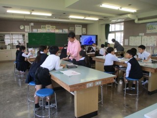 理科は、「からだのつくりと運動」の学習に入っています。自分の腕をさわって骨の数などを確かめました。