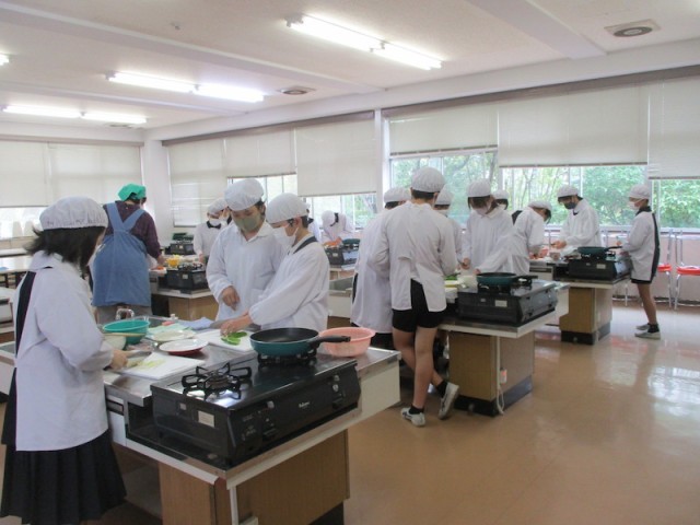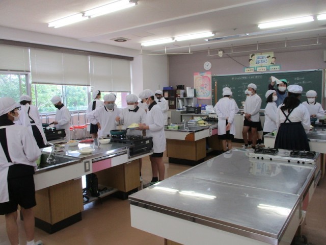 先日の6年1組に続いて、6年1組さんも調理実習で野菜炒めを作りました。切ったり炒めたりしながら、洗い物もしていくなど協力しながら活動を進めていました。またまた試食をさせてくれましたが、これまた、炒め具合も味加減もよく、とてもおいしかったです。