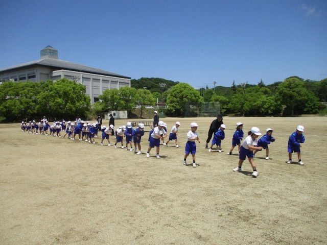 大運動場でダンスの練習(1、2年生) 公開日 2025/05/07 更新日 2025/05/07 学校全体 4時間目には大運動場の状態もよくなってきていたので、1、2年生は初めて大運動場でダンスの練習をしました。1、2年生、それぞれが1列になったり、1年生と2年生とで列が入れ替わったりする練習をしながら、曲に合わせてダンスをしました。