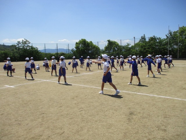 雨のため、なかなか大運動場で練習ができなかった3、4年生でしたが、ようやくすることができました。朝の時間に3、4年生それぞれでリレーの順番を決め、大運動場で入退場の練習をした後、いよいよダンスです。大運で立ち位置を確かめながら練習することができました。明日は、初めてフラッグをもっての練習をするかもしれないということでした。出張のため見ることができないのが残念ですが、3、4年生のみなさんの元気な姿を来週にまた見せてください。