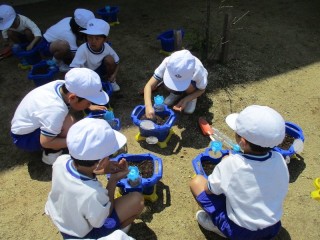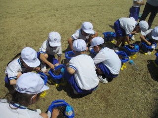 1年生はアサガオのたねまきをしました。一粒ひとつぶ、大事そうに植えている様子が写真でも伝わってくるのではないでしょうか。これから水やりなどのお世話をがんばって、アサガオの成長を見守ってくださいね。