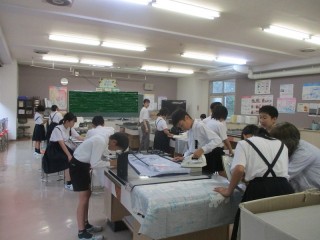 エプロン作り(6年1組) 公開日 2025/06/11 更新日 2025/06/11 6年生 今日は6年1組さんがエプロン作りをしていました。ミシンで縫っている表情も、アイロンをかけている表情も真剣です。