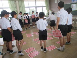 朝のひととき、ジャンボトランプで楽しんだ6年1組でした。