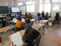 入学説明会で、新1年生に紹介する学校の行事や教科の勉強について、説明の練習をして...