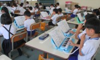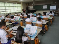 タブレットを使ってドリル学習をしました。ICTの先生も教えてくれています。