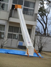 2年生がシューター訓練を行いました。図工・生活科室のベランダから中庭にシューター...