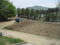 分館長さんがきてくださり、先日きれいに耕してくださった農園にみぞを作ってくださ...