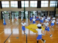 体育館で低学年が「ボール運び」に挑戦! スピード感あふれる動きに、みんな夢中に...