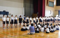 夏に児童会役員が参加した「いじめゼロサミット」で学んだことを、全校生に伝えました...