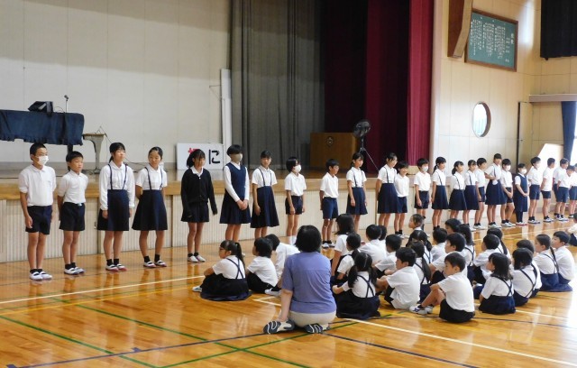 全校みんなで、がんばってー!の大きな拍手を送りました。