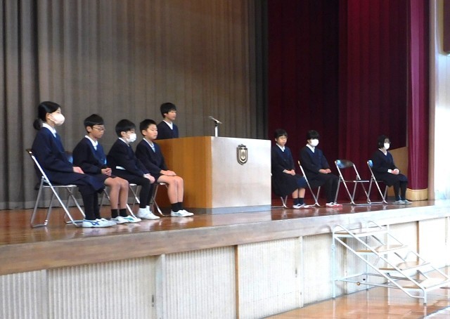 新児童会役員任命式・児童会役員引継ぎ式 公開日 2026/01/28 更新日 2026/01/28 学校全体 新旧それぞれの役員のあいさつは、内容も態度もすばらしく、これまでの努力やこれからへの決意がよく伝わってきました。これまで全校生のために、一生懸命活動してきた旧の児童会役員、本当にお疲れさまでした。新しく児童会役員となる皆さん、どうぞよろしくお願いします。