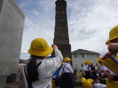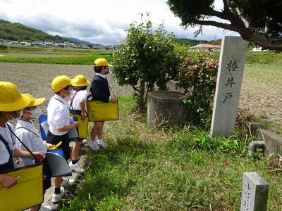 西コースへGO!(3年生) 公開日 2022/04/26 更新日 2022/04/26 3年生 勝間の昔ばなしに出てきた「石の塔、楠木庵、肩切り地蔵、勝彦神社」を見てきました。「石の塔は思っていたより大きかった。」「昔ばなしに出てきた場所だ!」と嬉しそうに話してくれました。 交通安全に気を付け、地域の方にも声をかけていただき、交流できてよかったです。次はどのコースを探検しようかな?