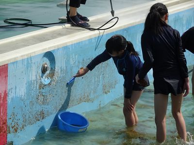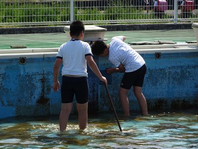 プール清掃日和! 公開日 2022/05/25 更新日 2022/05/25 学校全体 5月24日(火) 今日はとっても暑い日でした。真夏日を記録した今日、プール掃除を行いました。 水は冷たいかな?と、ちょっと心配していましたが、気持ちの良い冷たさでした。汚れていたプールも、子どもたちのおかげできれいになりました。子どもたちの力は偉大です。 今日から少しずつ水を入れ、6月のプール開きに備えます。