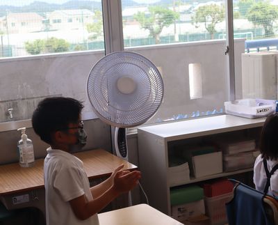 子どもたちは休み時間に元気に遊んでいますが、かなり心配です。早明浦ダムは水不足ですが、児童玄関付近にミストを準備し、教室にエアコン+サーキュレーターを稼働しています。また、水分補給もいつも以上に呼びかけています。帰宅後も、しっかり水分を取るように声掛けしてください。暑い日が続きそうですが、どの子も熱中症にならずにこの夏を乗り切りましょう。