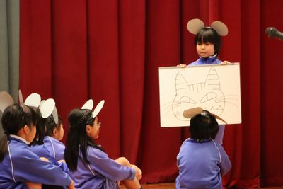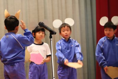 N.Nさん:最初は緊張したけど、練習したらできるようになってきました。本番は動きやセリフを、全員がしっかりできました。最初緊張していたけど、後半ではわたしもみんなも緊張が解け、生き生きと演技できました。いい思い出の学習発表会だったから、3年生でも楽しくやりたいです。