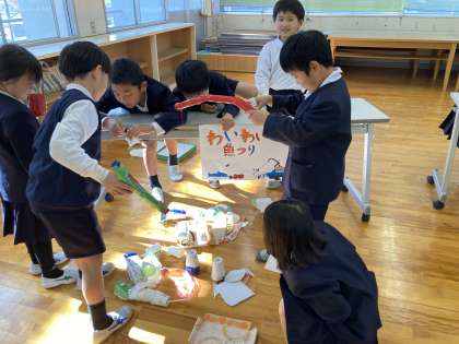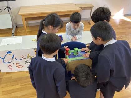 この日のために2年生は自分たちで考えたおもちゃを作って1年生を招待しました。1年生に遊び方を説明して、おもちゃを渡したり、一緒にしたりして楽しい時間を過ごしました。仲良く活動できていい体験になりました。
