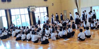 出場する5・6年生の選手のみなさんに全校生で激励の拍手を送ります。
