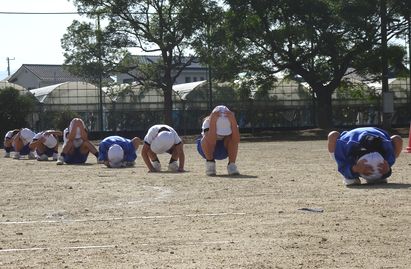 1年生は、小学校て初めてのシェイクアウト訓練を体験しました。統一した時間の午前10時には、体育で運動場にいるため、事前に教室での避難行動練習をしました。防災頭巾もかぶりました。統一訓練時は、運動場での避難行動「体を低くして頭を守る」をしました。また、常備品についての学習では、水やティッシュ、懐中電灯、非常食などの例があがり、「備えをしているよ。」「家の人に聞いてみるよ。」という声が聞かれ、防災への意識を高めることができました。 (^o^)